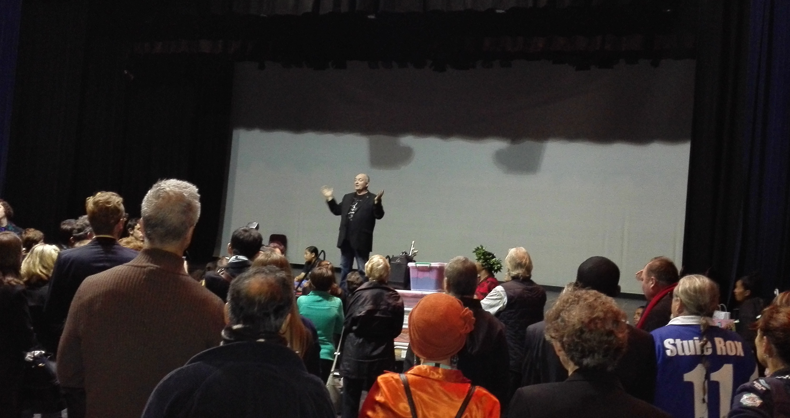 As our actors played out a day in Logan, we in the orchestra were blowing, bowing and striking our little hearts out to 18 awesome original songs. The brass section had big, snappy harmonies going barp, barp barp! into the night sky! Heavy funk rhythms were lead by Sam Tuuga’s Bass 6 Samoan funk trio and Jay Turner as the All Star band, directed by hip-hop artist Music Director Morganics. He was also emcee and drove the whole show on flawlessly, using vivid hand gestures to bring in the house band, urge them on, and cut them out. They in turn, never missed a beat. The pros!