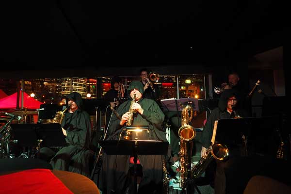 Valtozash Bigband appeared at the Brisbane Jazz Club (8 April) as Gregorian monks, on a smoky stage set against the magnificent city skyline.