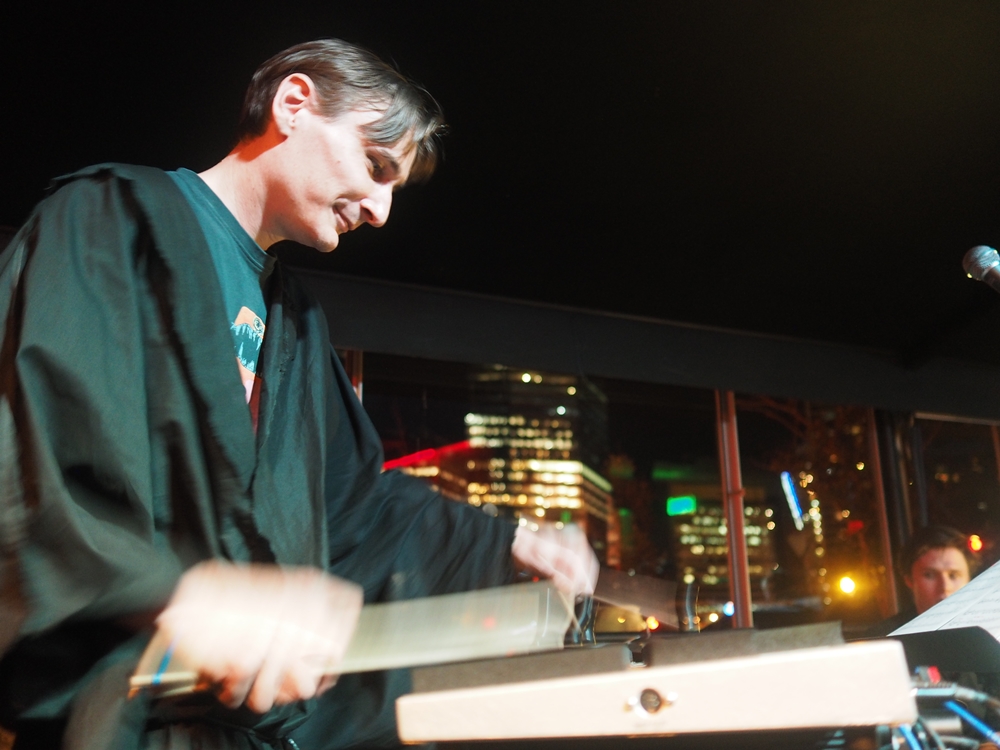 In ‘Methylated Demons’ the hoods were off and those jazz-metal monks were working up a sweat over funky rhythms and chopping time signatures; Bonetti let rip with a solo on the vibes, along with John Stefulj on soprano sax.