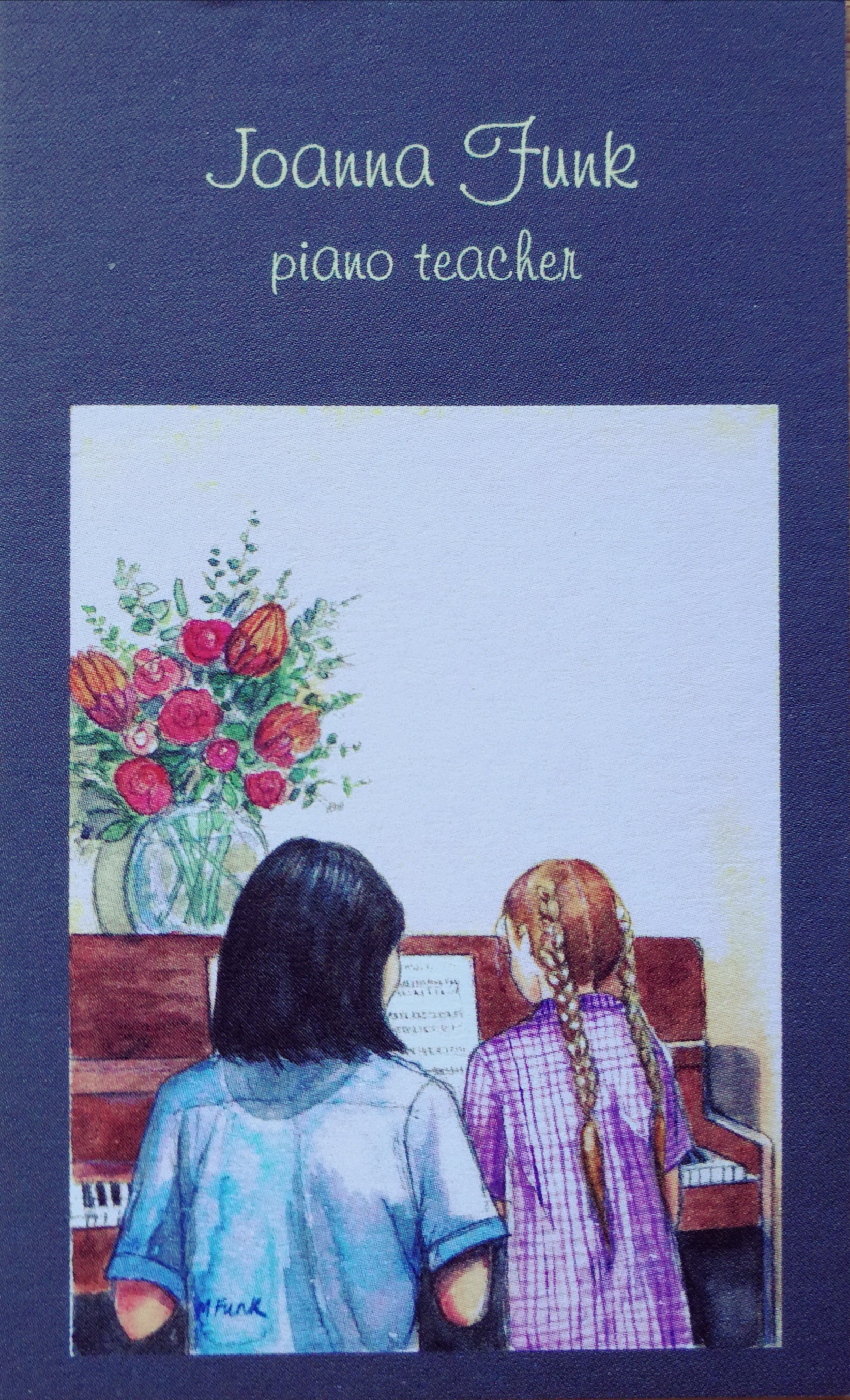 Mary captures perfectly the tenderness of sharing music with a child. Jess is still my student, and has just entered high school. She saw the business card and said, “Oh my gosh, I’m famous!” Then took a few to give her grandparents.