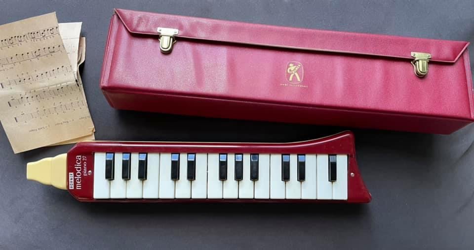 I’ve been looking for this kind of melodica for ages — it’s the kind that Augustus Pablo played. Hohner piano 27 melodica – called piano because the earlier models had buttons rather than an actual keyboard. It has a very warm tone, not bright at all. I really want to play it in Roaring Lion but it’s a matter of blowing it well into the mic. The band is loud and this kind of acoustic instrument can just drown unless it’s really amplified. Found it on Amazon, from a second-hand shop in the U.S.