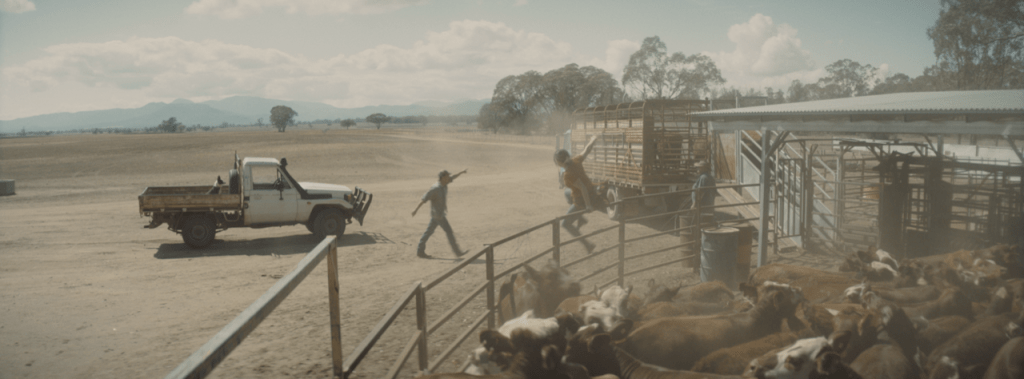 “The first time we went to the paddocks, Stegs’ dad pointed out the mountains of the Kaputar range. He said, to his family, they look like giants – a man and a woman, sleeping on their backs. After that, I felt their presence everywhere we went on that property. We backlight most of our shots when we’re working with natural light, and the mountains are east of the property, so they are in the back of every shot. Those giants were so present, not only to the family that live there, but also to our crew while we were making the film.”
