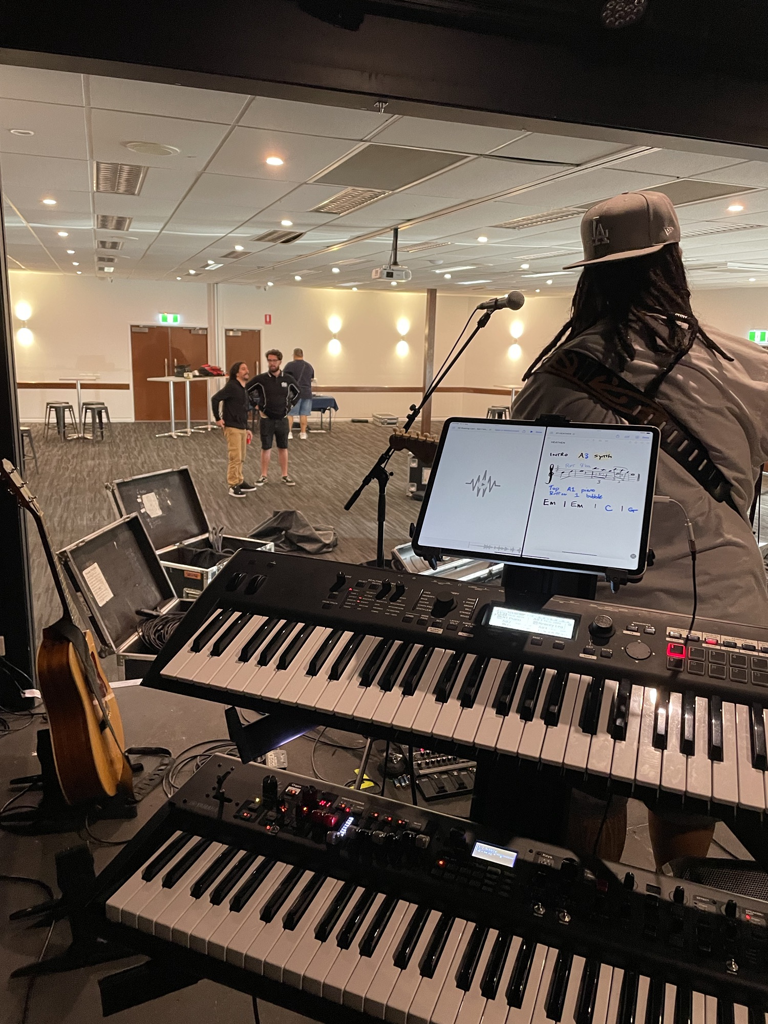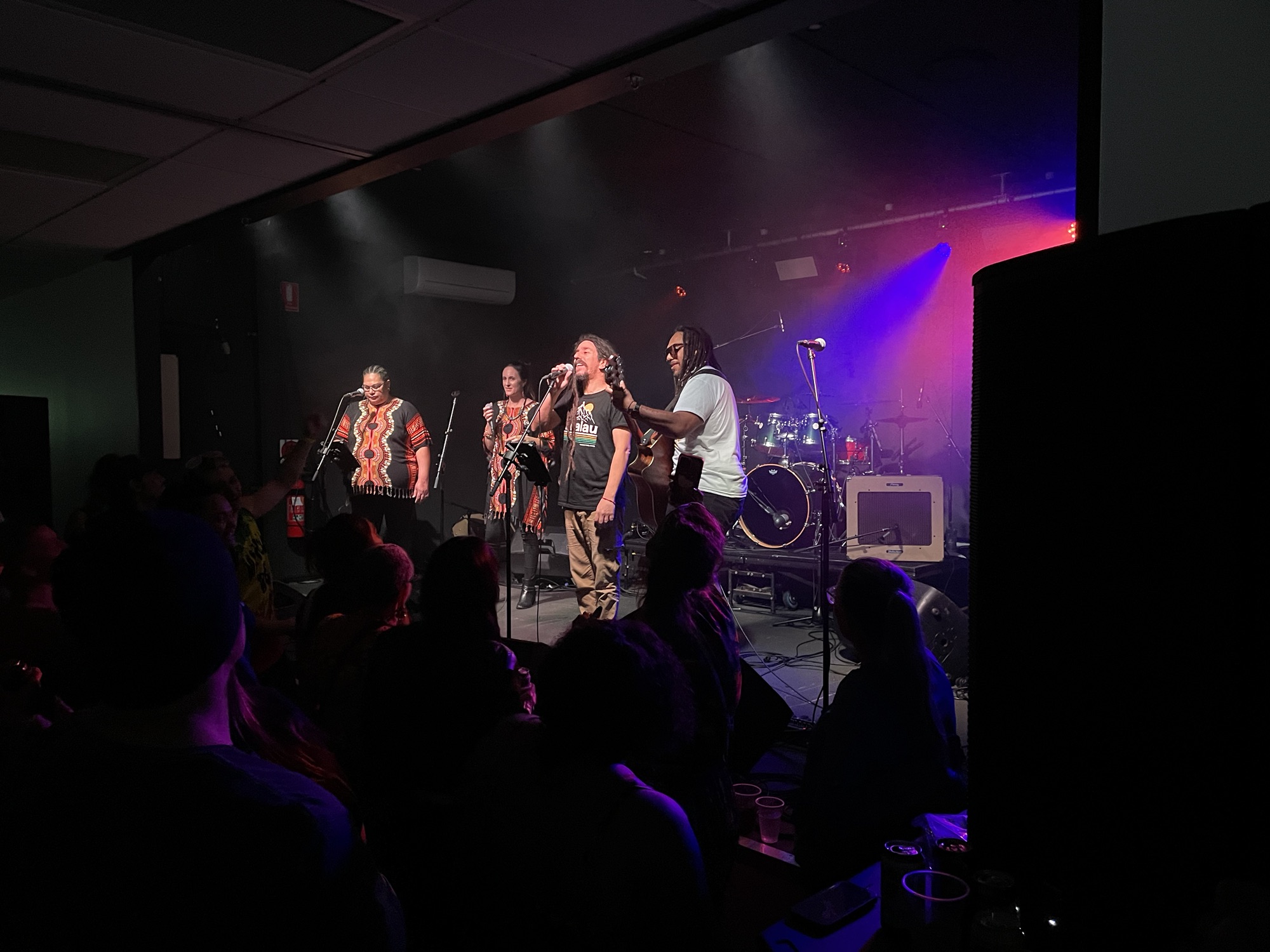 Bass player T (Taria) is next to me on stage and is a really assuring presence. He really helps me with my foldback and what to turn up and down.