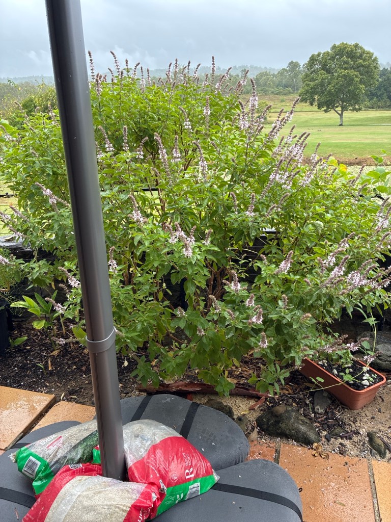 The bees are all over my Thai basil, which I finally gave up on and let it go to seed.
